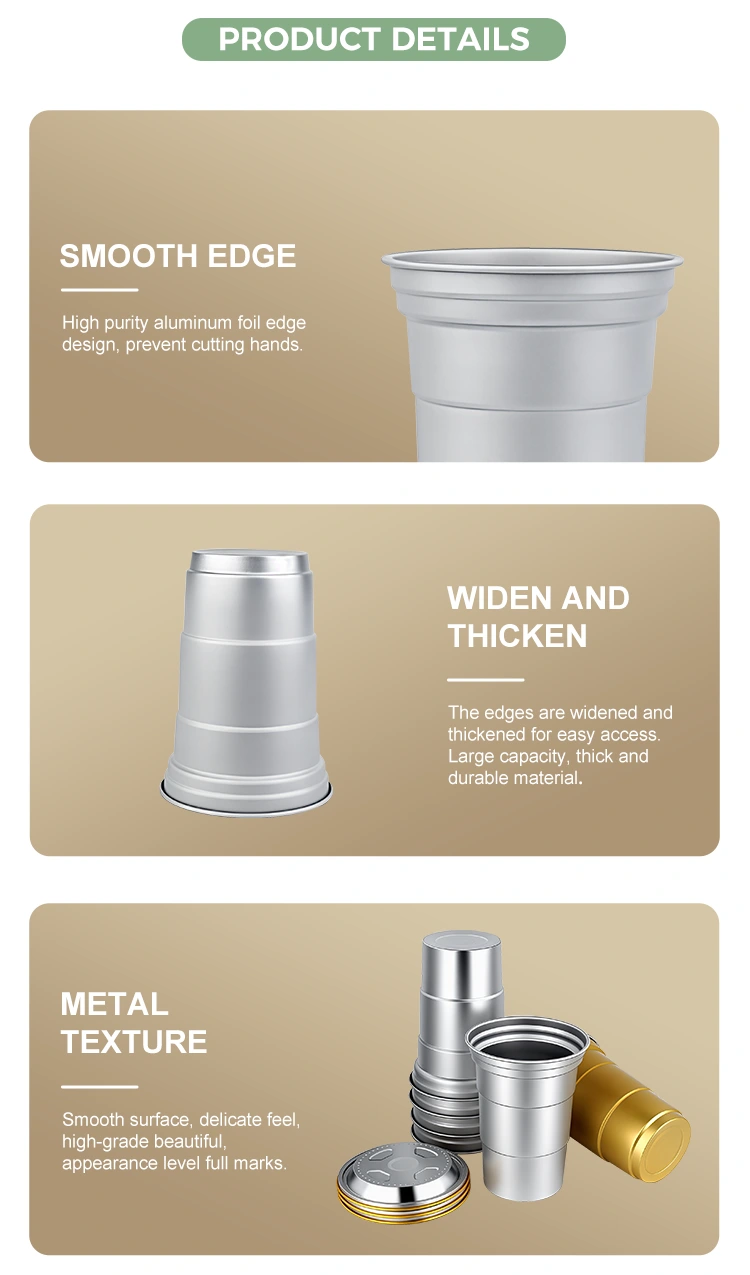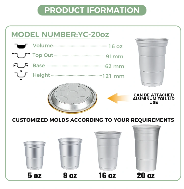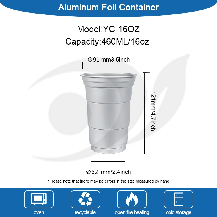 A diferencia de los contenedores generales, el vaso para bebidas desechable de papel de aluminio personalizado de 16 oz Yunchu está diseñado específicamente para brindar soluciones de empaque para marcas en escenarios específicos. Con su tamaño compacto (460 mililitros), este vaso para bebidas desechable y personalizable de papel de aluminio personalizado de 16 oz se adapta a los hábitos de consumo de bebidas instantáneas de una sola porción. Estos vasos de fiesta desechables personalizados de papel de aluminio de 16 oz son particularmente adecuados para actividades de comida para llevar, mercados o campamentos, más allá de sus funciones prácticas. Principalmente, puede ayudar a aumentar el valor de la marca.