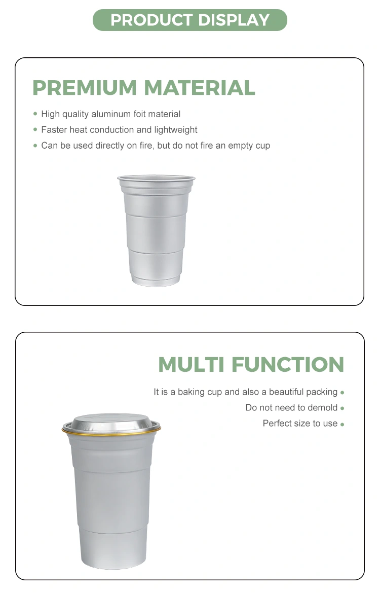 También se puede utilizar para almacenar bebidas calientes. El vaso para bebidas calientes desechable de papel de aluminio personalizado de 16 oz se puede colocar en un horno para calentarlo o en una fogata (asegúrese de evitar el contacto directo del vaso vacío con la llama) para calentar el contenido.