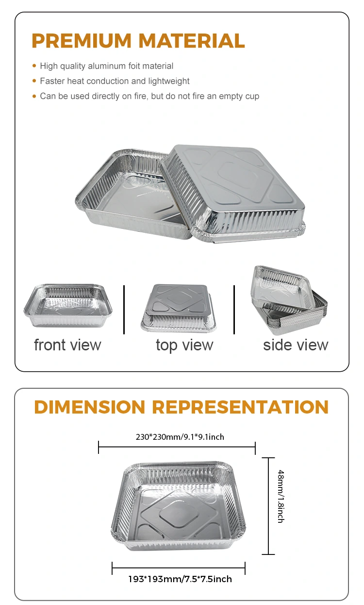 El proveedor de aluminio de Yunchu produce brochetas desechables de aluminio de aluminio plateado, que son adecuados para los pedidos de comida para llevar, pequeños pasteles en panaderías, bocadillos familiares y restaurantes. Safe and healthy, food ideas are not limited, kitchen utensils are a good partner to easily cook food, air fryers and other equipment are heat-resistant and oil-proof, easy to bake, outdoor barbecue, temporary bowls are not afraid of fire, when using, food or soup needs to be placed, do not dry without water, household oven, clean and convenient, disposable plate, can be thrown away after use without cleaning, the container is integrated into the body, and the El diseño de bordes es atento para evitar rascarse las manos. Hay múltiples tamaños disponibles para que elija para adaptarse a diferentes escenarios de uso. Si tiene alguna pregunta o necesita más información, no dude en contactarnos.