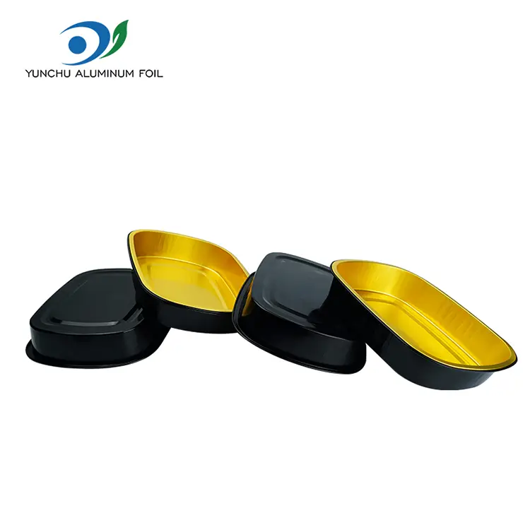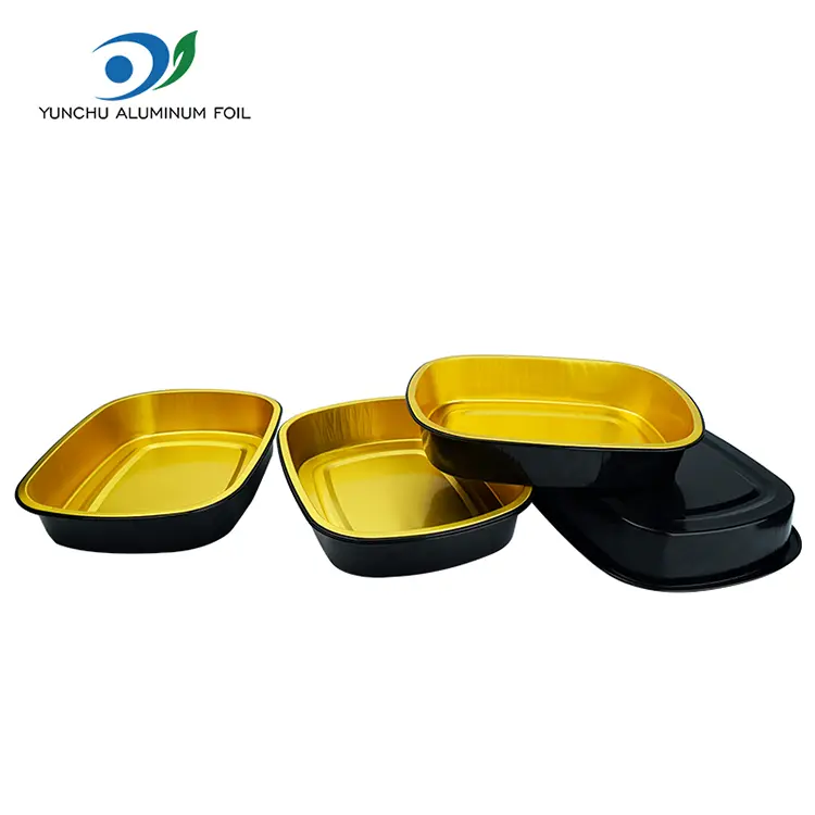 Etiquetas calientes: Bandeja de oro negro desechable Bandeja para hornear contenedores de aluminio rectangular