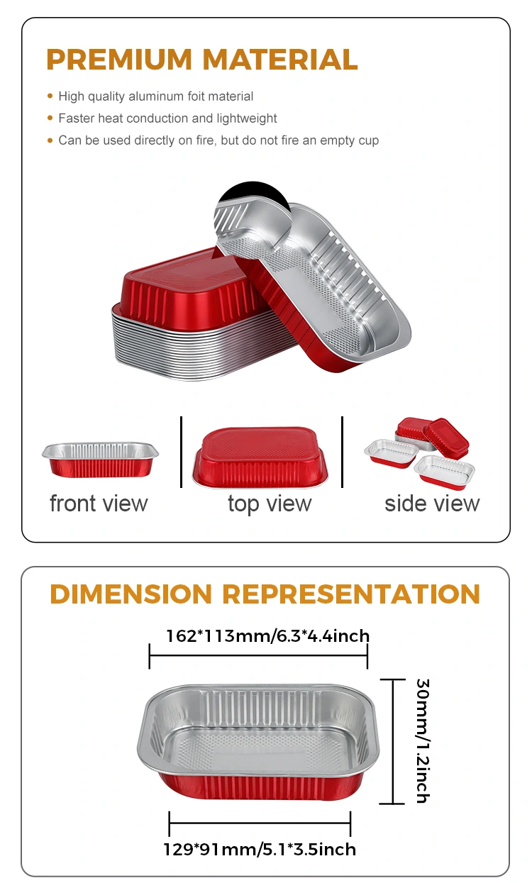 -Los contenedores de papel de aluminio cuadrados rojos con sello de catering desechables más nuevos de Yunchu están hechos de papel de aluminio primario de calidad alimentaria. Ha sido sometido a múltiples pruebas de seguridad y no contiene metales pesados ​​ni aditivos nocivos. Esto garantiza que no haya olores ni residuos cuando los alimentos entren en contacto y cumple con las normas de seguridad nacionales.