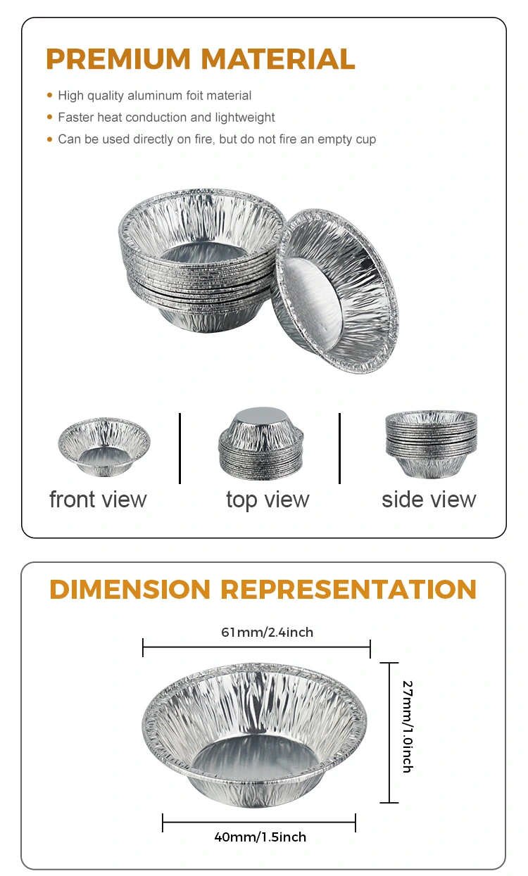 Desde reuniones familiares hasta producción comercial en masa, los contenedores de papel de aluminio plateado desechables con bandeja para tarta de huevo de papel de aluminio Yunchu se adaptan a todos los escenarios, lo que abre diversas y deliciosas posibilidades: