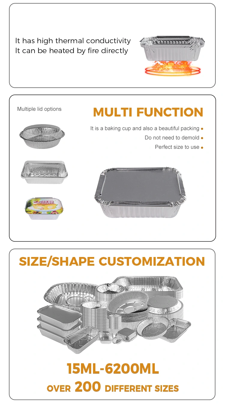 Además, este recipiente de aluminio de aluminio plateado de barbacoa desechable también es extremadamente seguro, ya que se puede usar normalmente bajo una llama abierta sin preocuparse por los riesgos de incendio. Al mismo tiempo, su excelente resistencia y sellado de temperatura también proporcionan una garantía para el transporte seguro de alimentos, lo que permite a los consumidores y clientes usarlo con más confianza.