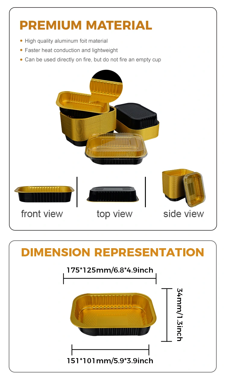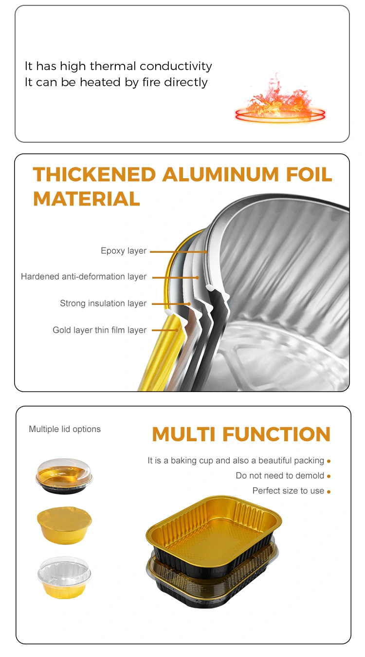 Los recipientes de papel de aluminio de paredes ligeras para llevar rectangulares desechables para catering del proveedor de papel de aluminio Yunchu están hechos de calidad alimentaria. Han sido estrictamente procesados ​​y examinados y no tienen ningún olor peculiar. Todo el proceso de producción se realiza en un taller limpio, libre de polvo y sin aditivos nocivos. El arroz, la carne, la sopa, etc. también pueden estar en contacto directo. Este contenedor de papel de aluminio ha pasado la certificación de calidad alimentaria FD A de EE. UU., siguiendo estrictamente los estándares de la FDA. Después de pruebas profesionales, la cantidad de migración de aluminio es mucho menor que el límite especificado y la prueba cumple con los estándares. Hemos obtenido un informe de prueba formal. No sólo se puede utilizar en la restauración nacional, sino que también cumple plenamente con los requisitos para la exportación al extranjero. Doble garantía, ya sea una cadena de comida rápida, cocina privada o comerciantes transfronterizos de comida para llevar, se puede utilizar. Es confiable y puede soportar fácilmente diferencias extremas de temperatura de -20 ° C a 250 ° C. Desde refrigeración en refrigerador y almacenamiento en congelación hasta calentamiento por microondas, horneado en horno e incluso calentamiento con llama abierta (requiere herramientas de aislamiento térmico), se puede usar para envasar sopa caliente y platos calientes para llevar. Incluso si se mantiene caliente durante mucho tiempo, el recipiente no se ablandará ni se deformará, ni se derretirá ni producirá gases nocivos; Después de que los consumidores reciben la comida, no necesitan cambiar el recipiente, sino que lo colocan directamente en el horno microondas para calentarlo. Además, conduce el calor de manera uniforme, por lo que no se producirá sobrecalentamiento local ni quedarán atrapados los alimentos durante el calentamiento. Puede conservar el sabor de la comida al máximo. Ya sea arroz al horno, guisos, barbacoa o productos semiacabados horneados, es adecuado para envasar.