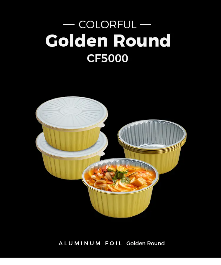 El modelo CF5000 CF5000 CF5000 CF5000 CF5000 tiene una amplia gama de usos, puede usar la tapa de sellado de aluminio de aluminio redondo dorado de aluminio de aluminio desechable de Yunchu CF5000. Partes, actividades de catering, tiendas de catering de autoservicio, etc., contenedores de aluminio redondo dorado sellable desechableis hechos de aluminio de aluminio 8011-0 de alta calidad, la bandeja de hornear desechable con tapa es duradera, no fácilmente perforada o dañada; El material permite una distribución uniforme de calor, buena retención de calor, sin pegajosidad, sin quema, impermeable y a prueba de aceite, sin necesidad de limpiar, sin carga sobre las manchas de aceite. Los bordes lisos no se lastiman las manos, asegurando que los platos preparados estén completamente cocinados; La bandeja de aluminio está terminada en un elegante color dorado que mejora la presentación y complementa la decoración de su cocina o evento.