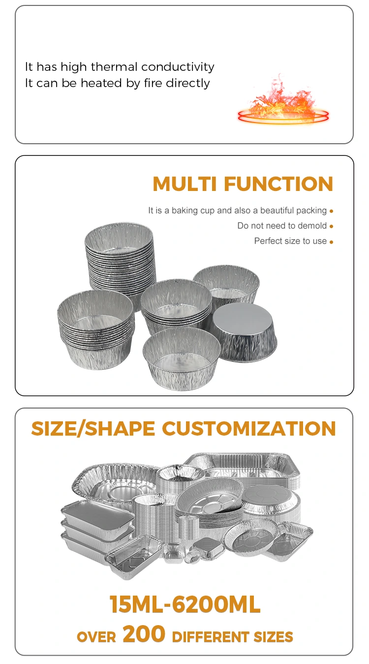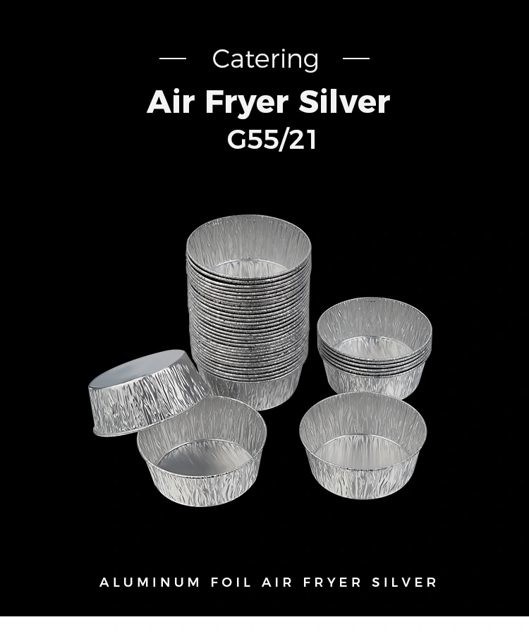 El recipiente de papel de aluminio plateado para freidora de aire redonda plateada desechable del proveedor de papel de aluminio Yunchu está diseñado para ser desechable, eliminando por completo la tediosa tarea de lavar los platos después de las comidas, ahorrando tiempo y energía; El material del papel de aluminio es reciclable, respetuoso con el medio ambiente y sin cargas, teniendo en cuenta la comodidad y los conceptos ecológicos. Aspecto pequeño y exquisito, el almacenamiento apilable no ocupa espacio, lo que ahorra fácilmente espacio de almacenamiento en la cocina. Ya sea que se use en el hogar o en los negocios, este recipiente de papel de aluminio redondo plateado desechable puede resolver el problema de almacenar y usar salsas con materiales de alta calidad y un diseño cuidadoso, haciendo que cada cocina y cada reunión sea más cómoda y sin preocupaciones.
