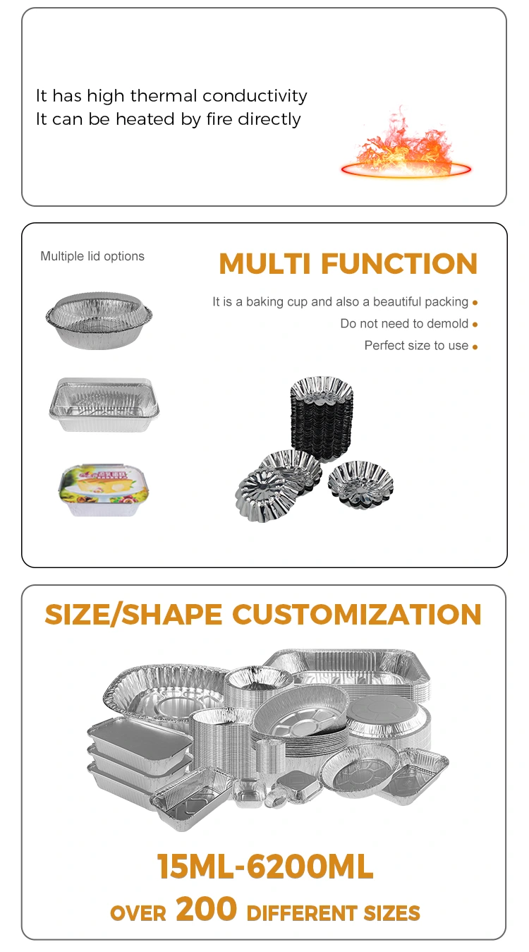 Los productos al por mayor, el material de aluminio de aluminio, los seguros y no tóxicos, hechos de material de grado alimenticio de aluminio, con buena conductividad térmica, usos seguros y no tóxicos son ricos y diversos, por lo que puede usarlo más a gusto, fácil de eliminar el molde cuando se usa temperatura alta, después de que el producto terminado se complete, fácil de eliminar la película, no dañe la forma, no dañe la forma, espesada y el material, no sea fácil, no dañe el material, no dañe el material, no dañe el material, no dañe el material, no dañe el material. Adiós a la molestia de lavar la olla y proteger fácilmente la olla, aislar manchas de aceite después de su uso, no es necesario que se limpie, el fondo liso no es fácil de quemar y adherirse al fondo, los alimentos antiadherentes es fácil de cocinar, el fondo es liso, puede resistir -20 ° C ~ 300 ° C, se puede calentar con la fuente abierta y el molde se calienta uniformemente.