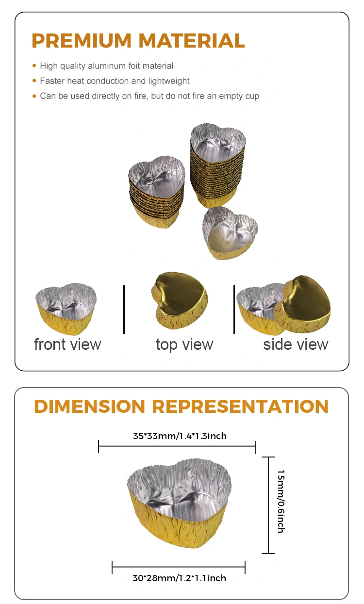 Este pequeño recipiente de papel de plata para hornear en forma de corazón es adecuado para empacar una variedad de pequeños productos de panadería como macarons, galletas y tartas. Controlamos estrictamente cada paso de producción en términos de control de calidad para garantizar que todos los productos cumplan con los estándares de seguridad nacionales y hayan aprobado la certificación ERP alemana, la certificación SGS de la UE y la certificación ISO9001.