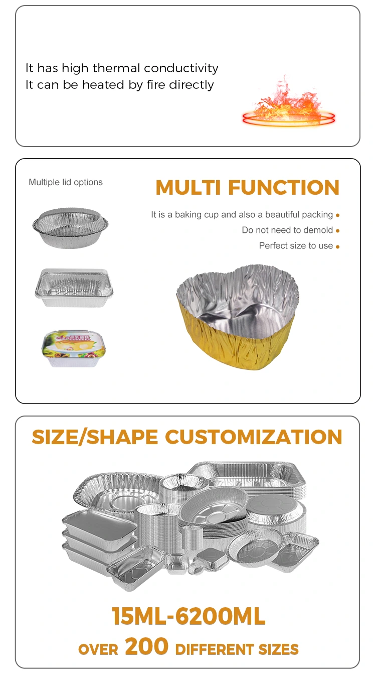 El proveedor de aluminio de Yunchu en forma de aluminio en forma de corazón de aluminio de aluminio de aluminio de aluminio es muy adecuado para empaques pequeños, aplicaciones de hornear, diseño único, diseño en forma de corazón, puede cumplir con una variedad de usos, una cosa para fines múltiples, el uso puede colocar una variedad de alimentos pequeños, además, los otros alimentos de aluminio de aluminio con aluminio. Deslizarse y puede mejorar la resistencia al deslizamiento, se puede personalizar una variedad de colores.