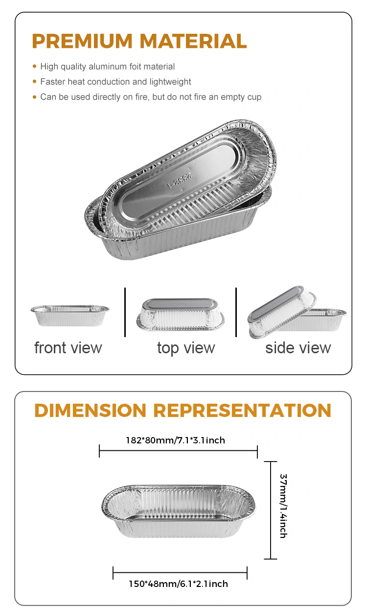 • Recipientes de aluminio de aluminio para hornear a aire ovaladoRecipientes de aluminio de aluminio para hornear a aire ovalado