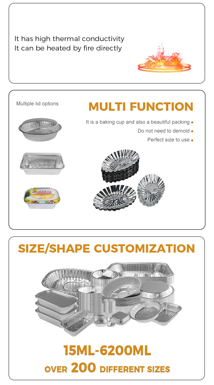 Contenedor de alimentos de aluminio plateado de aluminio de aluminio Yunchu de aluminio, diseño de alimentos de aluminio plateado de aluminio plateado, diseño de carrocería de taza sin deslizamiento, cuerpo de taza con textura anti-deslizamiento, aumenta la fricción, evita el deslizamiento. El diseño de la boca de la copa de encaje se puede plegar y almacenar, lo cual es conveniente y práctico. Múltiples diseño de gran capacidad, uso único, sin necesidad de limpiar, amplia gama de usos, adecuados para tartas de huevo horneadas, pasteles, patatas fritas de yema de huevo, pasteles de tazón y otras delicias. Las bandejas de tarta de huevo de los proveedores de aluminio Yunchu han pasado la certificación ERP alemana, la certificación SGS de la UE y la certificación del sistema de gestión de calidad ISO9001. Utilizamos materiales saludables y amigables con el medio ambiente para garantizar la seguridad y la no toxicidad de nuestros productos. Estos materiales no solo son renovables sino también ecológicos, lo que refleja nuestros estrictos requisitos en la seguridad alimentaria y nuestro compromiso de buscar estándares de alta calidad para nuestros productos generales.