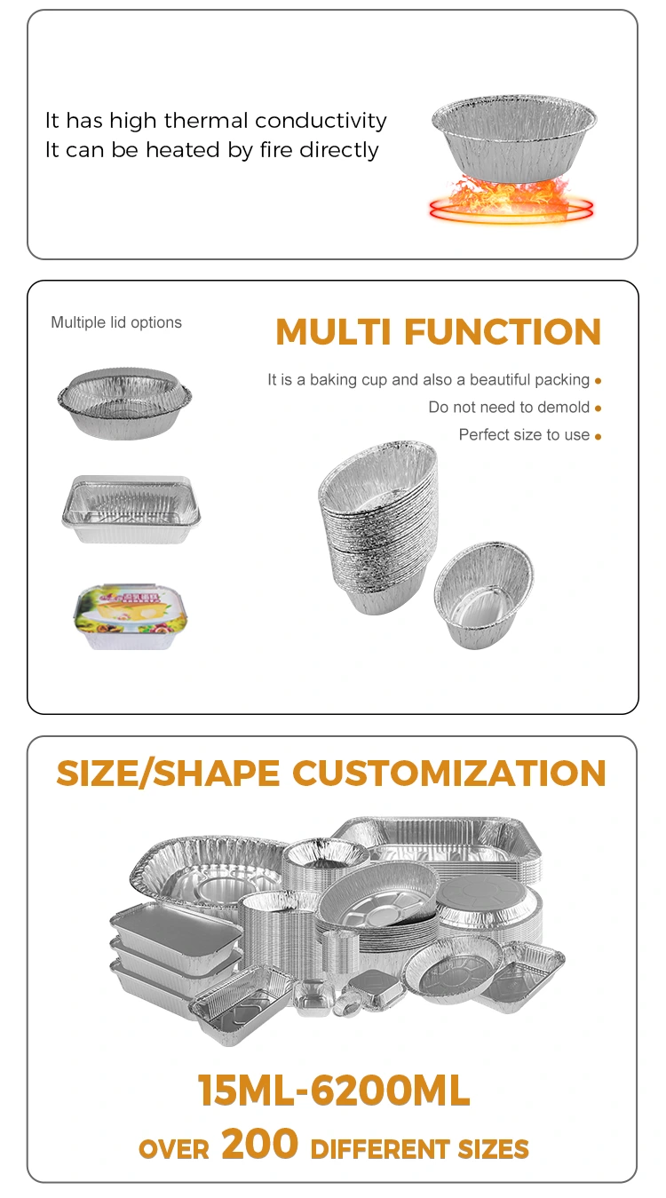 Proveedor de aluminio de Yunchu de aluminio Cail al vapor de aluminio de aluminio Food Container Model 6225 es un recipiente de aluminio de aluminio que se puede utilizar para uso comercial y doméstico, que puede desbloquear más usos, como huevos horneados, ostras horneadas, tortas de huevos, pasteles, etc. y también se pueden usar como mierda de altaje de altavoces de altavoces, salientes de altaje de altaje de altavoces, sava de altaje de altava, con tope de altavo, con tope de nivel de ala de 8011. Moldado integral, la pared es tan suave como un espejo, que es hermoso y práctico, el diseño del dobladillo no se lastima las manos, y una variedad de especificaciones y tamaños satisfacen sus diferentes necesidades.