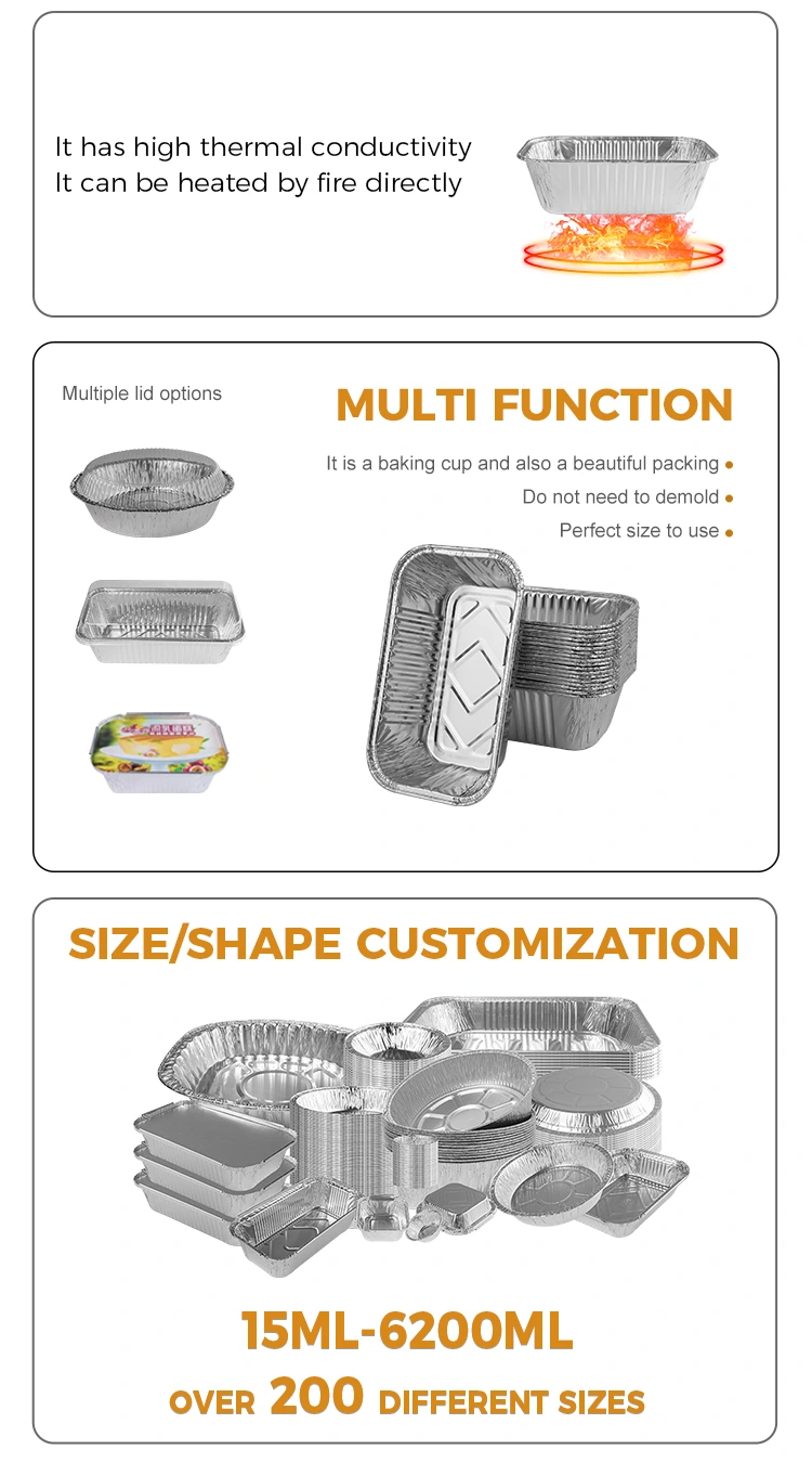 Los contenedores de aluminio de aluminio plateado de la parrilla de aire rectangular producidos por el proveedor de aluminio Yunchu de aluminio son adecuados para muchos escenarios, como pedidos de comida para llevar, pasteles de panadería, bocadillos familiares y restaurantes. El contenedor está hecho de material de aluminio de aluminio de grado alimenticio, lo que garantiza la seguridad durante el proceso de horneado de alimentos. Además, este contenedor también es adecuado para la colocación de alimentos, clasificación de frutas y verduras, y degustación de bocadillos de centro comercial. El contenedor está integrado en su conjunto, y el diseño del dobladillo es atento para evitar rascarse las manos. Hay múltiples tamaños disponibles para que elija para adaptarse a diferentes escenarios de uso. Si tiene alguna pregunta o necesita más información, no dude en contactarnos.