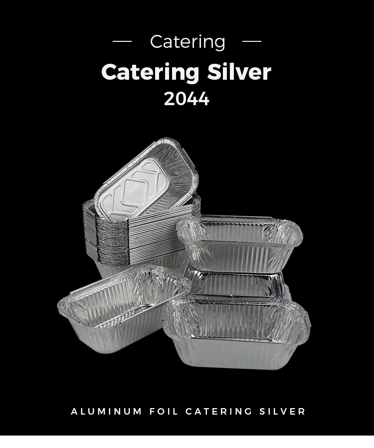 Yunchu Aluminum Foil Supplier Model 2044 Rectangular baked rice Silver Aluminum Foil Containers High-quality aluminum foil material thickened and not easy to break, can be heated over an open flame, visible quality, a variety of sizes and specifications are available, can be adapted to various pot sizes, resistant to high temperature baking, not easy to scorch the bottom deformed, bottom texture design, beautiful and generous, prevent food Sticking, adopte el diseño de la cara alta, admite el pedido al por mayor de la combinación de aluminio, puede proporcionar personalización de impresión de patrones, piezas de MOQ 1000 individuales/desde, este contenedor de aluminio plateado de barbacoa rectangular tiene una variedad de especificaciones y modelos para elegir, puede comunicarse con el personal de negocios para investigaciones.