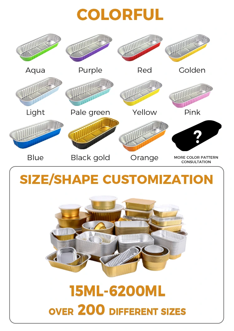 Yunchu aluminum foil supplierRectangular baking cake Smoothwall Aluminum Foil Containers is made of 8011 food-grade aluminum foil material, choose to store in the refrigerator with lid, aluminum foil lid and PET fully transparent plastic lid, cannot be used in air fryer, oven and other equipment, universal design air fryer, oven, steamer can be used with various equipment, can be reused hygienic and environmentally friendly, the El diseño cóncavo y convexo en la parte inferior no solo aumenta la estabilidad del producto, sino que también juega un papel en el anti-Slip; Los refuerzos en los lados mejoran la robustez del producto, lo que lo hace más duradero y, además, este contenedor de aluminio de paredes ligeras rectangulares ofrece una variedad de colores para elegir, lo que le permite personalizarlo de acuerdo con sus preferencias.