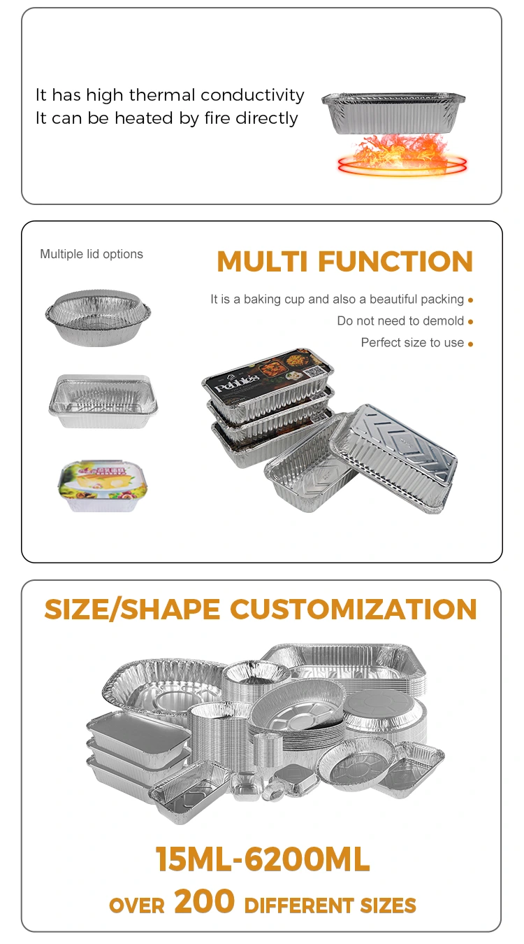 Proveedor de lámina de aluminio Yunchu, contenedores de aluminio de aluminio plateado de barbacoa rectangular, altura abierta resistente a la hornear de larga duración disponible, altura actualizada para evitar tocar la pared de la olla, un diseño elevado para evitar que la sopa fluya, los alimentos no son fáciles de pegar, fácil de usar, se usan sin borde sin cortar las manos, hacia adentro, el borde de los bordes para evitar que las manos cortadas se traten con cuidadosamente, se pueden tratar con cuidadosamente el contacto con cuidadosamente el contacto directo con los contenidos directos, se puede usar el contacto directo. El uso único es sin preocupaciones y la limpieza, no es necesario limpiar e higiénico después del uso, usado valor de reciclaje de caja de aluminio sucio, en términos de control de calidad, monitoreamos estrictamente cada paso de producción, para garantizar que todos los productos cumplan con los estándares nacionales de seguridad. La Compañía ha obtenido el Certificado de Seguridad de Materiales de envasado de alimentos de aluminio emitidos por el estado, y ha aprobado la certificación ERP alemana, la certificación SGS de la UE y la certificación ISO9001.