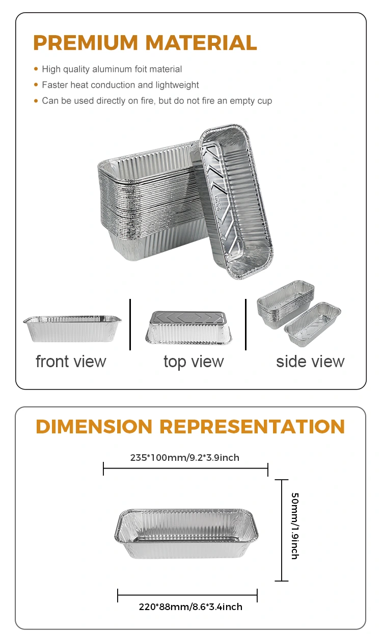 La bandeja de pan rectangular para hornear contenedores de aluminio de aluminio plateado proporcionados por el proveedor de aluminio de Yunchu presenta un diseño de larga duración y resistente que permanece estable incluso frente a las llamas abiertas de alta temperatura, asegurando que sus delicidades no se dañen de ninguna manera. Además, nuestros contenedores están cuidadosamente diseñados con secciones elevadas que evitan que la sopa fluya mientras evita que los alimentos se pegue, lo que le permite disfrutar de cada bocado con facilidad. Los bordes elegantes del contenedor están diseñados para ser estéticamente agradables y funcionales, evitando el riesgo de recortes durante el uso. El diseño del borde de pliegue interno es aún más íntimo, evitando las quemaduras al tiempo que garantiza la seguridad del uso. La bandeja de pan rectangular para hornear el recipiente de aluminio de aluminio plateado puede estar en contacto directo con los alimentos, cumpliendo con los estándares de seguridad alimentaria. Además, nuestros productos son desechables, ahorrando el problema de la limpieza, y la caja de aluminio de aluminio también se puede reciclar para lograr el consumo verde. La lámina de aluminio Yunchu monitorea estrictamente cada proceso de producción para garantizar que todos los productos cumplan con los estándares nacionales de seguridad. Hemos obtenido una serie de certificaciones internacionales, incluido el Certificado Nacional de Seguridad para Materiales de envasado de alimentos de aluminio, certificación ERP alemana, certificación SGS de la UE y certificación ISO9001.