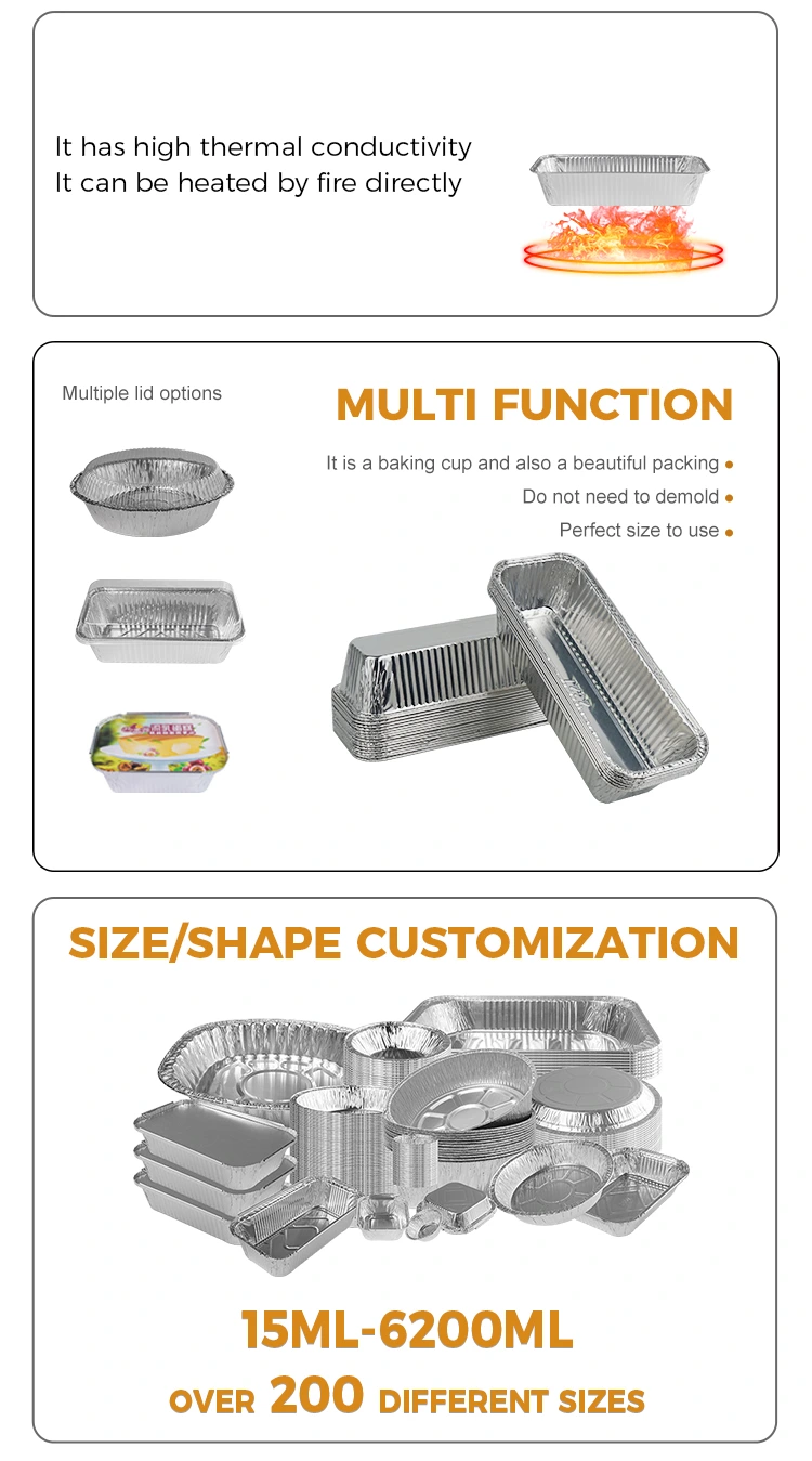 Características: la bandeja de pan rectangular de los contenedores de aluminio de aluminio de plata es sano y ecológico, utilizando materiales de grado alimenticio, seguros y no tóxicos, utilizando materiales renovables y respetuosos con el medio ambiente, enfocándose en la seguridad alimentaria y la búsqueda de la calidad general del producto.