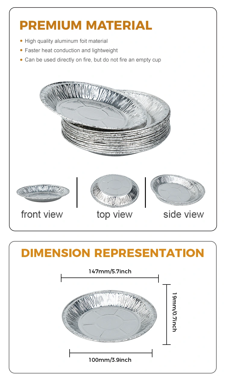 Características: Contenedor de alimentos de aluminio de aluminio plateado para hornear a aire redondo para hornear