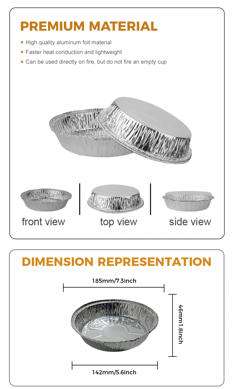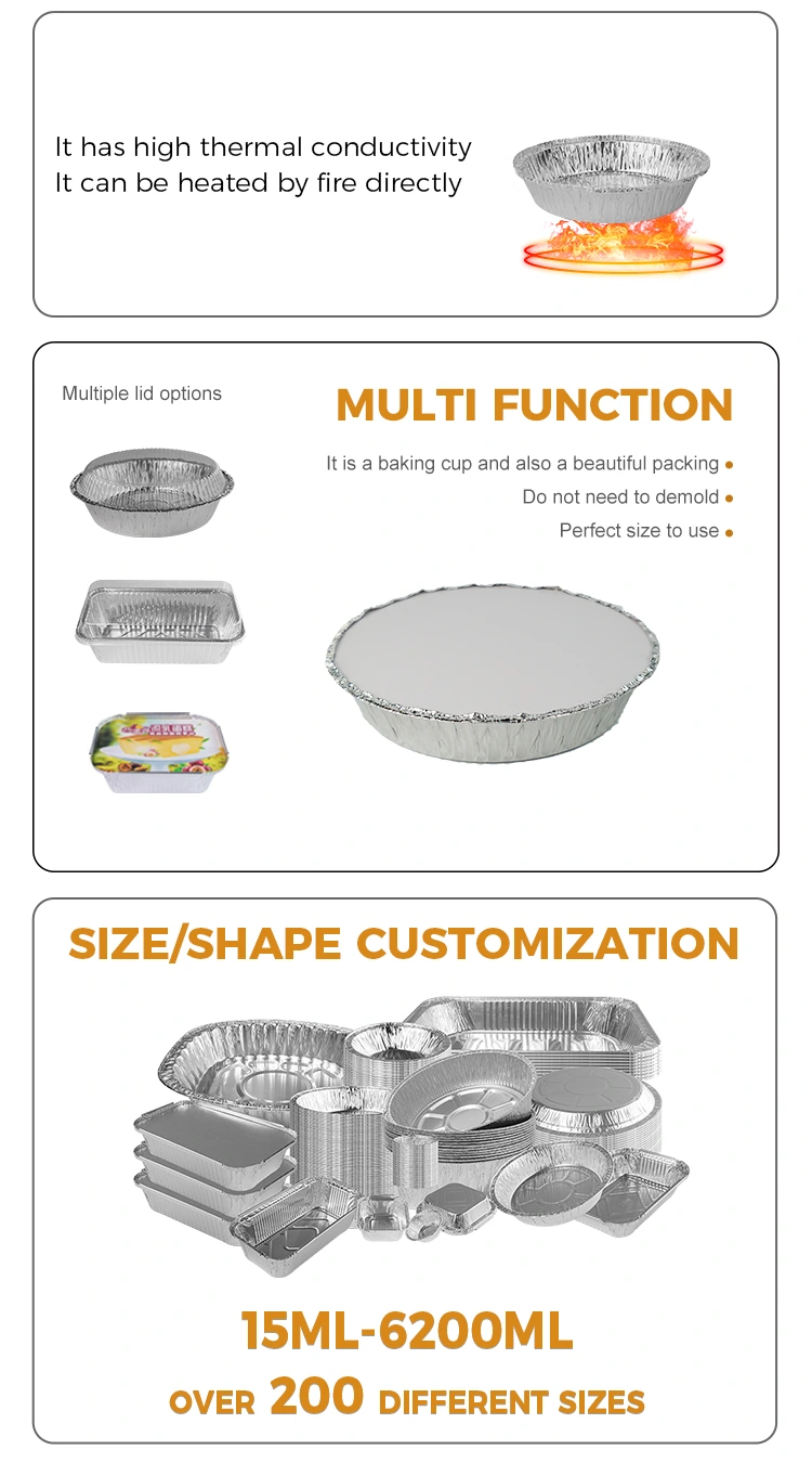 Características: moldeo de una pieza en espesas y resistentes al horno, adoptando material de aluminio de aluminio de grado de contacto de alimentos, tenga la seguridad de contactar a los alimentos, no es fácil de deformar y no filtrarse, espesor fuerte, resistencia a la corrosión, alta resistencia a la temperatura.