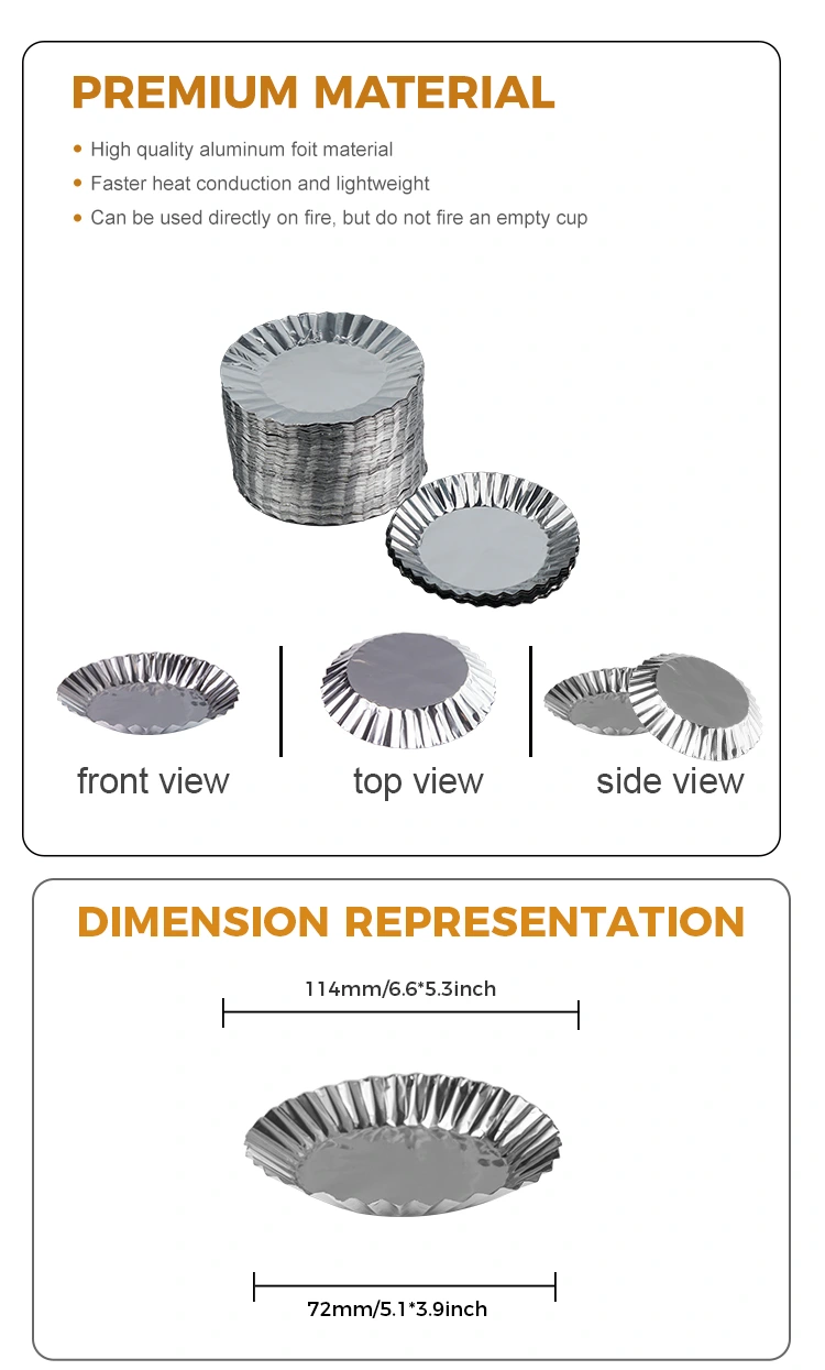 El material del recipiente redondo de aluminio plateado con revestimiento de papel de aluminio para pasteles para hornear está hecho de papel de aluminio de alta calidad, que tiene buena resistencia a altas temperaturas y puede evitar eficazmente que la grasa de los alimentos penetre en el papel de aluminio, manteniendo así la frescura y el sabor de los alimentos. Su superficie es lisa y delicada, lo que facilita la colocación de alimentos en su interior sin dejar residuos.