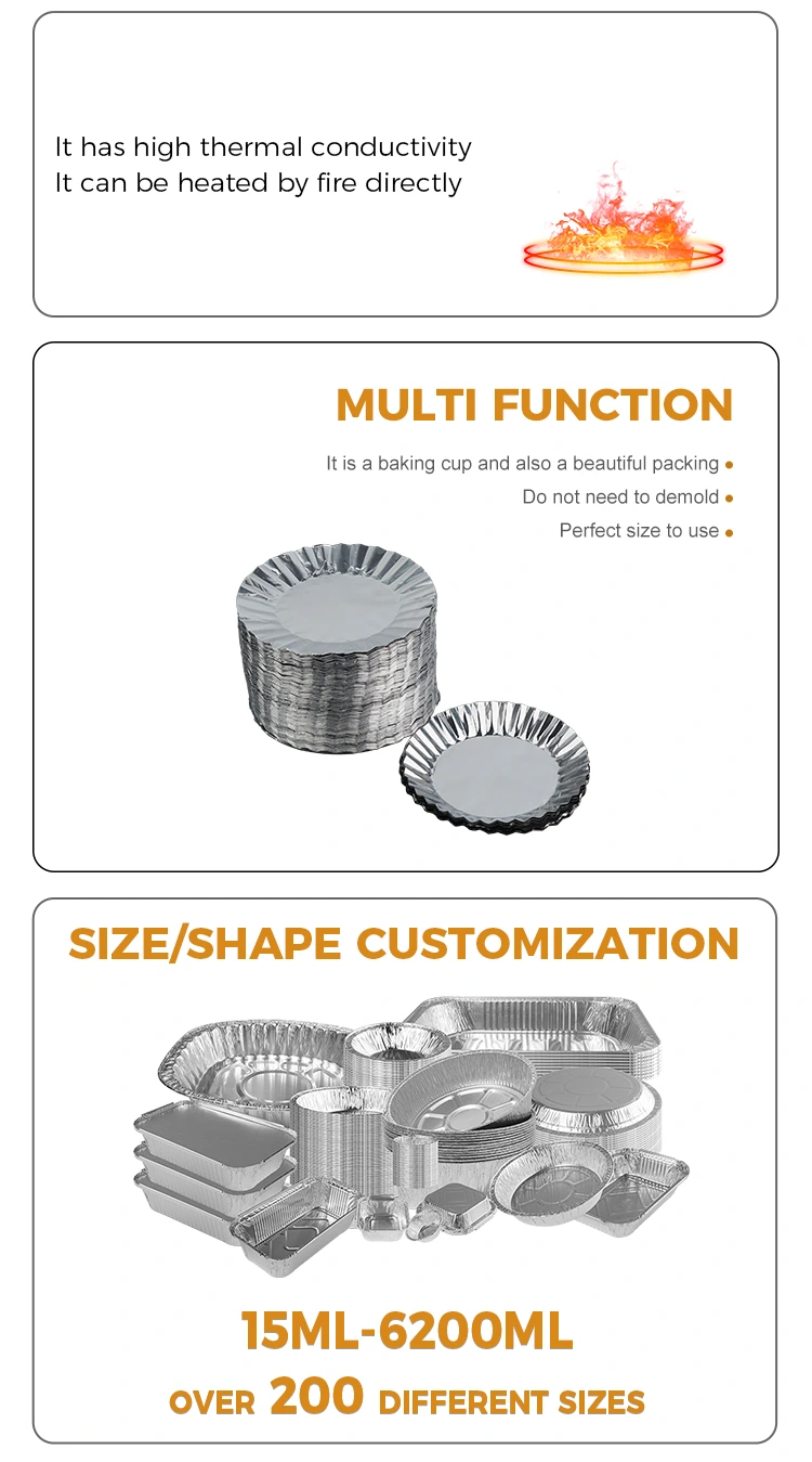 Vale la pena mencionar que El molde para pasteles redondo para hornear con recipiente para alimentos de papel de aluminio plateado es muy ecológico. Hecho de material de papel de aluminio reciclable, después de su uso, puede desecharlo en el contenedor de basura designado para su procesamiento, sin preocuparse por causar ningún impacto negativo en el medio ambiente.