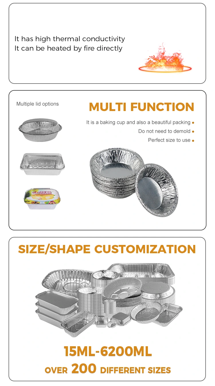 Esta tarta de huevo redonda para bocadillos de aluminio plateado de aluminio de aluminio está hecho de material de aluminio de aluminio de contacto con alimentos 8011, asegurando la seguridad en contacto con los alimentos, no es fácil de deformarse y no es fácil de filtrar. Su grosor es fuerte, resistente a la corrosión, alta resistencia a la temperatura y una vida útil más larga.