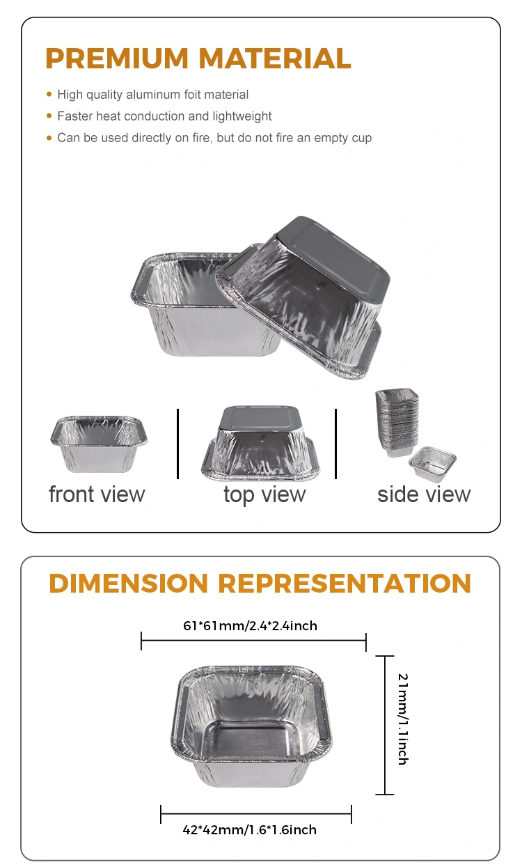 Proveedor de aluminio de aluminio Yunchu Freidantes de aluminio de aluminio de aire cuadrado en catering, producción de freidores de aire doméstico, con entrega de comida para llevar, salsas de buffet, banquetes y otros lugares, pero también adecuados para huevos al vapor, chocolate, galletas, pequeñas pasteles, salsas y otros rangos, ya sea con alimentos o sales, se pueden aplicar a todos los lugares de la industria de la cultura, también se pueden utilizar los lugares de la industria, los pequeños, también se pueden utilizar los pequeños, los pequeños, los pequeños, los pequeños, también se pueden aplicar. Las tazas de aluminio se pueden guardar al agregar puntos a los platos, pero también se pueden lavar y usar sin carga.