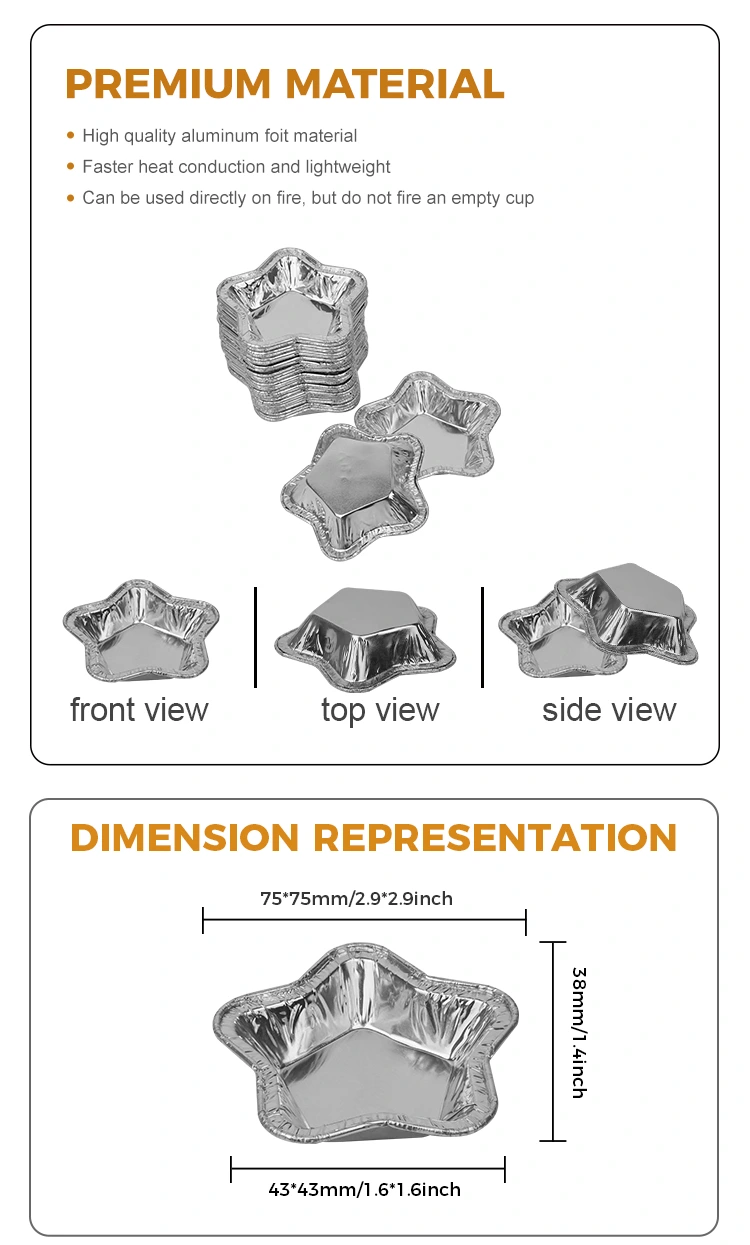 • Tazas de tarta de papel de aluminio en forma de estrella para hornear Envase de comida de papel de aluminioTazas de tarta de papel de aluminio en forma de estrella para hornear Envase de comida de papel de aluminio